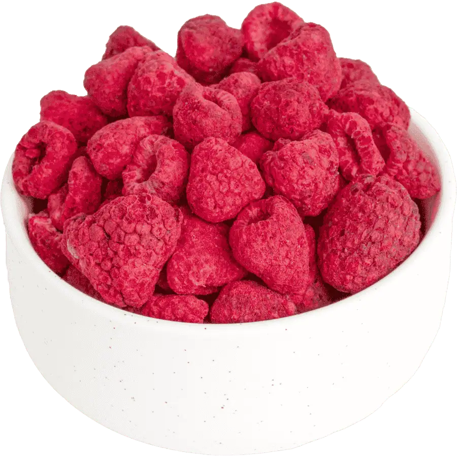 Unsere gefriergetrockneten ganzen Himbeeren stammen aus verantwortungsvoller Produktion und werden durch einen schonenden Gefriertrocknungsprozess verarbeitet. Dieser Prozess entfernt das Wasser aus den Himbeeren und bewahrt gleichzeitig ihre natürliche Farbe, Geschmack und Nährstoffe.